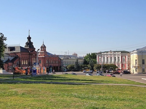 В небольшом сквере перед банком в 1925 году был открыт памятник В.И. Ленину. Скульптура была поставлена на постаменте бывшего монумента царю Александру II. В мае в сквере очень красиво цветет сирень.