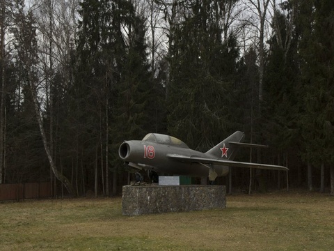 В память о гибели первого космонавта здесь установлен самолет МиГ-15УТИ. На таком самолете погиб Гагарин. Здесь же небольшой дом-музей Гагарина и Серегина.
