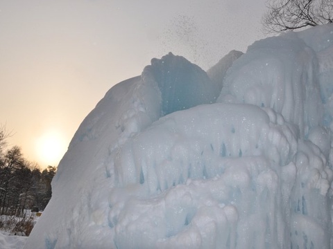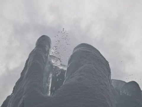 Зимой фонтан выглядит особенно эффектно. Он обрастает огромным ледяным навесом синего цвета. Довольно красивое и редкое зрелище.