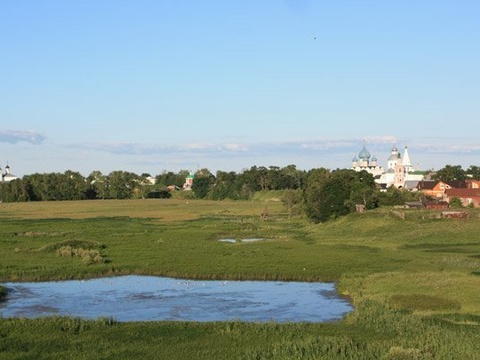 - Сделать красивые фотографии Суздальского кремля, стоящего напротив холма через реку Каменку.