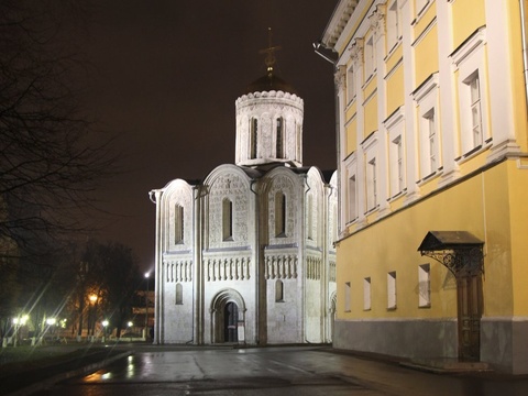 Этот собор, созданный как придворный, является одной из немногих сохранившихся построек домонгольского периода. Невероятно ценен для русской архитектуры. Построен собор в 1194-1197 годах на княжеском дворе Всеволода Большое Гнездо. Освятили его в честь небесного покровителя князя - святого Дмитрия Солунского.