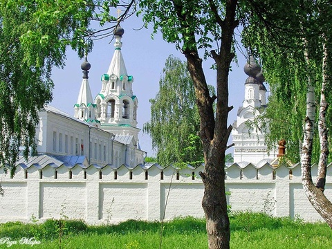 1. Главный храм обители - Свято-Троицкий собор (1642-1643 гг.). Главным украшением собора являются кованные золоченые кресты - шедевры кузнечной работы муромских умельцев 17 века, - и поливные изразцы того же столетия с разнообразными орнаментами. Изразцы придают Троицкому собору особое изящество и неповторимое своеобразие, отличающее его от других муромских храмов.