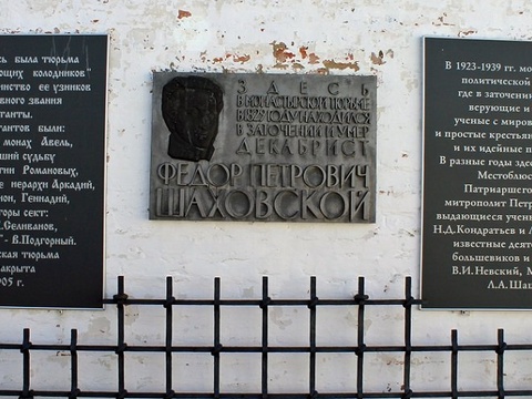Музей интересен тем, что рассказывает сразу о нескольких эпохах русской истории. За период существования тюрьмы здесь побывало 403 заключенных, причем как простых так и очень именитых людей, о чем свидетельствует мемориальная табличка при входе. Здесь в 1829 году закончил жизнь доведенный до сумасшествия декабрист Федор Шаховский. В 1841 году здесь умер монах Авель, предсказавший крушение царской династии, обе Мировые войны и Гражданскую войну в России. Авель был похоронен в Никольской церкви за алтарем.