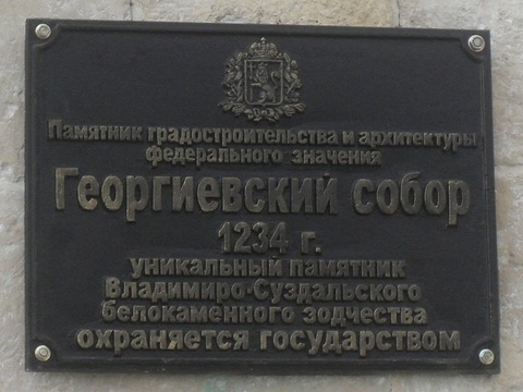 Нынешний Георгиевский собор был построен на месте древнего собора 1152 года, заложенного князем Юрием Долгоруким. Первый собор простоял меньше ста лет, и, судя по летописным свидетельствам, был разрушен во время землетрясения.
