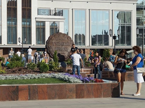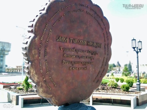 Наверное трудно было бы представить Тулу без памятника такому бренду как "Тульский пряник" :). Большой медный пряник поставили на главной площади города. Рядом красивый сквер с фонтанами, Дворец бракосочетания и Успенский кафедральный собор. На площади всегда много народу и туристов, фотографирующихся с пряником.