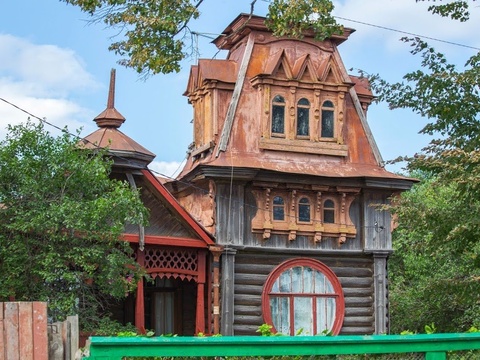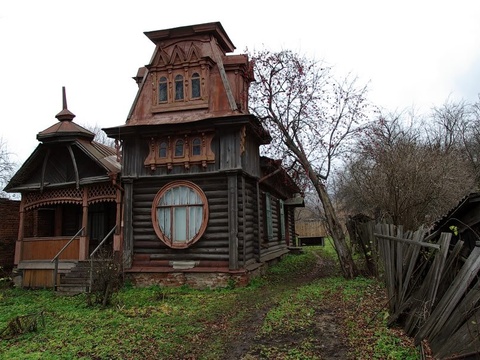 Красивый небольшой теремок, причудливых форм, является примером мастерства Кимрских зодчих. Еще один представитель симпатичного деревянного модерна на ряду с домом Лужиных. В первую очередь внимание привлекает необычная асимметричная крыша, круглое окно, похожее на иллюминатор, и конечно же резьба, украшающая дом.