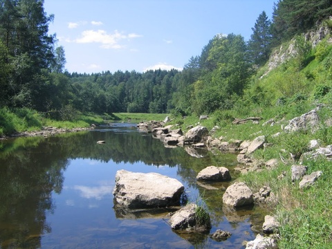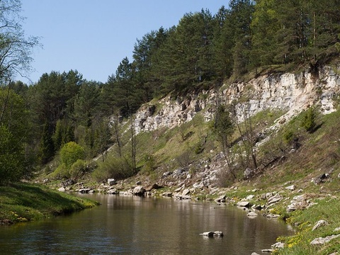 Отличное место для пикника и отдыха на природе. С одной стороны реки высокий 30-ти метровый скалистый берег, покрытый соснами. Отсюда открывается живописный вид на реку и леса. Другой берег низкий. Здесь можно удобно организовать стоянку у воды.