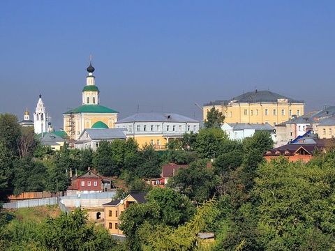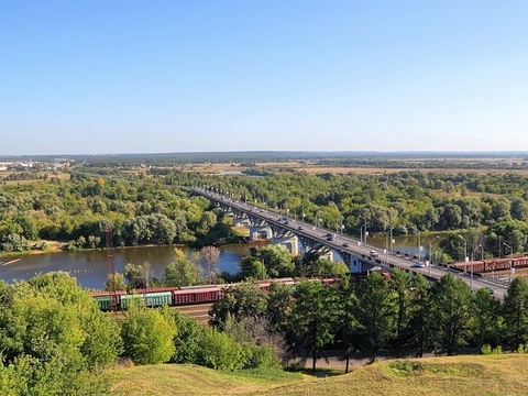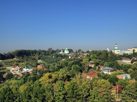 Большая смотровая площадка на возвышенности в красивом парке с великолепным ансамблем Успенского собора 12 века. На площадке установлен памятник князю Владимиру Красное Солнышко.