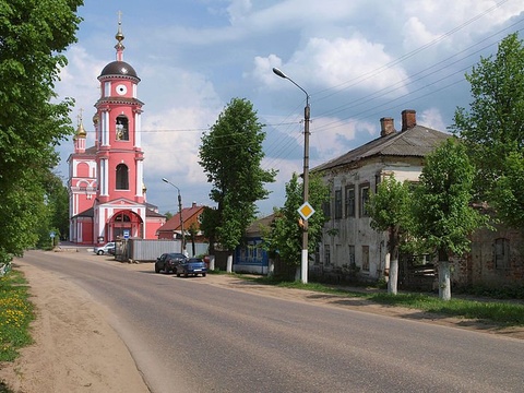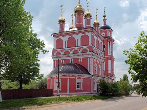 Нарядный, яркий храм с красивой колокольней встречает гостей, въезжающих в город со стороны Москвы. Построен в 1704 году на деньги прихожан. Колокольня достроена в 1819 году. Как и многие другие церкви, храм был закрыт в период советской власти. В нем находилось зернохранилище.