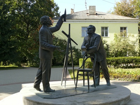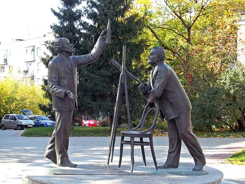 В жизни великие ученые никогда не встречались, но их объединяло общее дело и мечты о космосе. Памятник установлен в честь 50-летия первого полета человека в космос в 2011 году. Интересно, что памятник стоит на пересечении улиц, названных в честь этих ученых.