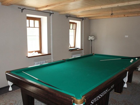 Для размещения и отдыха гостей на базе имеется следующее: охотничий домик - просторная спальная комната на 1-8 человек, кухня, сан. узел, русская баня, бильярд, гараж. В охотничьем домике имеется отопление, горячее и холодное водоснабжение.