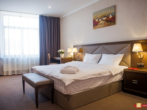 Также на территории отеля: фитнес-центр, SPA-зона с бассейном, ресторан "SK Royal", кафе "Балкон", лобби-бар, 3 конференц-зала.
