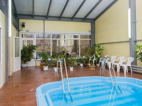 В санатории имеется собственный источник минеральной воды. Также на территории есть кафе с бесплатным Wi-Fi, сауна и бассейн.