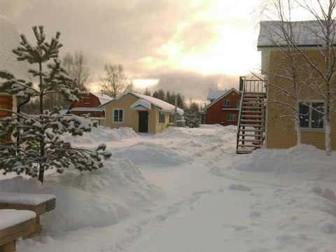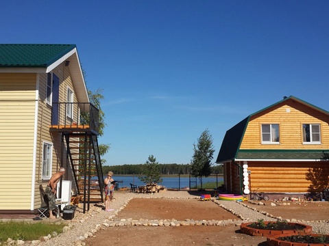 Под размещение гостей на базе есть 2 деревянных дома. На каждом этаже четырехместный двухкомнатный номер со всеми удобствами.