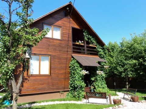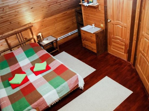На втором этаже дома: холл, санузел, четыре двухместные комнаты, оформленные в стиле четырех времен года. Во всех комнатах - деревянная мебель, окрашенная экологичной краской на водной основе. В каждой из комнат - две односпальные либо одна двуспальная кровати, тумбочки, настольные или настенные лампы, комод, стол, стулья, шкаф для одежды. На первом этаже дома: большая гостиная, кухня-столовая, санузел.