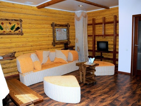 Все коттеджи сделаны из оцилиндрованного бревна с мансардными этажами. Площадь каждого номера составляет 65 кв.м., в том числе большой санузел с чугунной ванной и душевой кабиной. Каждый из коттеджей может комфортно разместить до 4 человек (можно поставить дополнительные места). В стоимость проживания включен завтрак.
