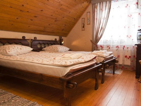 Дом предлагает два семейных номера под размещение. В каждом номере есть все необходимое: двуспальная/односпальные кровати, прикроватные тумбочки, комод, телевизор (спутниковое TV), холодильник, интернет Wi-Fi. На этаже два сан. узла и душевая кабина. Есть парковка для автомобилей.