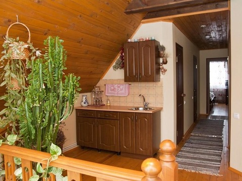Гостевой дом представляет собой новый деревянный двухэтажный дом с 3 двухместными номерам. Номера расположены на втором этаже. Вход на второй этаж отдельный. Гостевой дом готов принять как и небольшую компанию из 6 человек, так и индивидуальные пары.