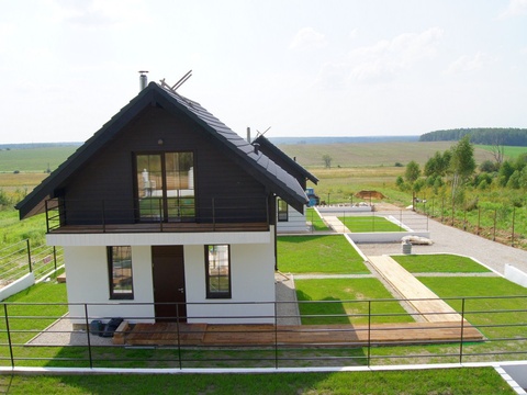 В мини-отеле Горки можно остановиться в 2-х этажных небольших, уютных домиках. Домики комфортно вмещают до 6 человек. В каждом есть: отопление, душ, туалет, две спальные комнаты, гостиная с кухней, большой современный телевизор и панорамный камин. Каждый домик имеет свою придомовую территорию и деревянную террасу из лиственницы.