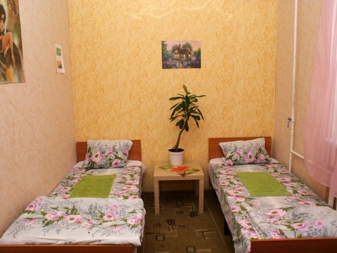 Отель находится в 10 минутах ходьбы от площади Победы и центра города. Можно остановиться в двухместном номере с удобствами или без, а можно снять койко-место в общем номере на 4, 5 или 7 человек.