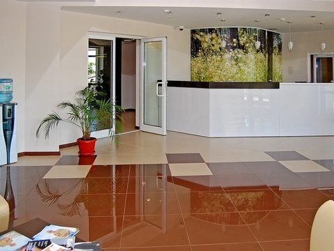Отель находится в 10 минутах езды от центра города. Стоит в сосновом бору.