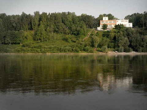 Красивое место. Живописные виды Оки. Небольшие деревянные коттеджи.